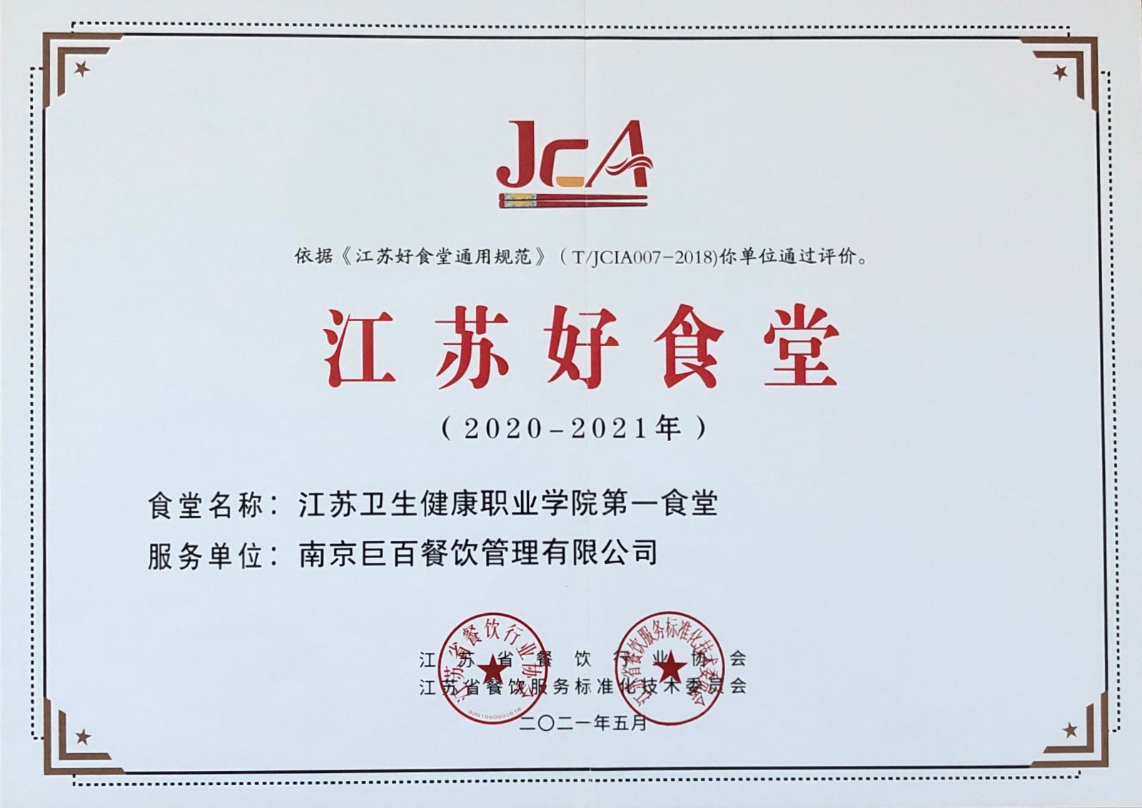 2016—2017年度江蘇好食堂·江蘇城市職業學院